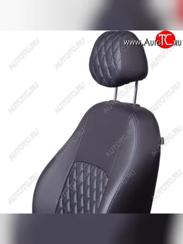 Комплект чехлов для сидений, (РЗС 60/40, 3Г Илана+Орегон) ТУРИН РОМБ Lord Autofashion Chevrolet Aveo (2002-2011) T200, T250 (черный, вставка РОМБ черная, строчка синяя) в Самаре Самарской области
