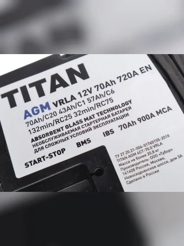 | Наименование | Аккумулятор ТИТАН AGM 70Ач обратная полярность ТИТАН 6ст70(0) в Самаре Самарской области |