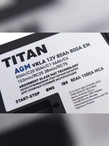 | Наименование | Аккумулятор ТИТАН AGM 80Ач обратная полярность ТИТАН 6ст80(0) в Самаре Самарской области |