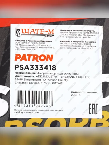 Амортизатор CHEVROLET Aveo (08-12) передний левый PATRON PATRON psa333418 в Самаре Самарской области