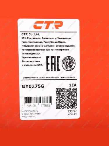 Амортизатор CHEVROLET Cruze (09-) передний левый CTR CTR gy0275g CTR gy0275g в Самаре Самарской области