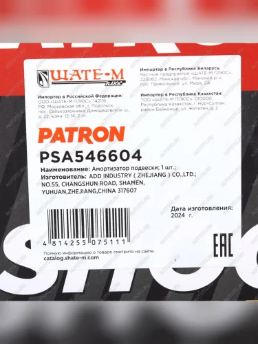 Амортизатор HYUNDAI Solaris (12-) передний правый газовый PATRON PATRON psa546604 в Самаре Самарской области