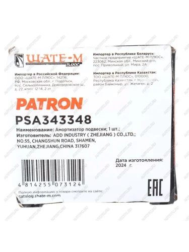 | Наименование | Амортизатор VW Golf 4,Bora AUDI A3 SKODA Octavia задний левыйправый газовый PATRON PATRON psa343348 в Самаре Самарской области |