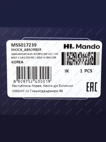 Амортизатор VW Golf 5,6,Passat AUDI A3 SKODA Octavia,Yeti передний левыйправый (1шт.) MANDO MANDO mss017239 в Самаре Самарской области