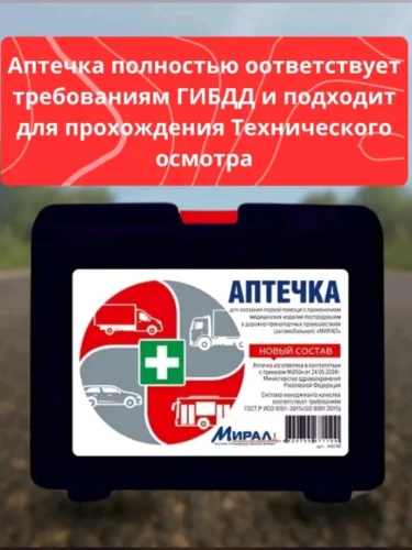 | Наименование | Аптечка автомобильная (Приказ МЗ РФ №260н 24.05.2024 г) малый футляр МИРАЛ в Самаре Самарской области |