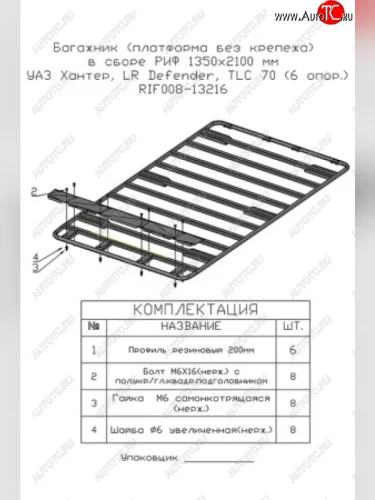 | Наименование | Багажник экспедиционный платформа 1350х2100 мм (высота крепежа 135 мм) РИФ в Самаре Самарской области |