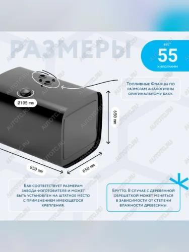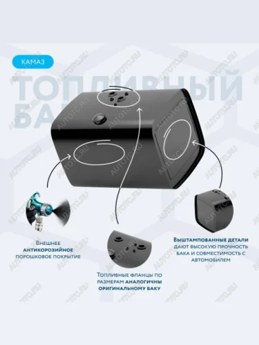 Бак топливный (аналог увеличенной ёмкости) 350 л. ЕВРО (650*650*950) СТАЛЬ БАКОР КамАЗ 43118, 5320, 5511, 6520 ( крышка полуоборот, с комплектующими) в Самаре Самарской области