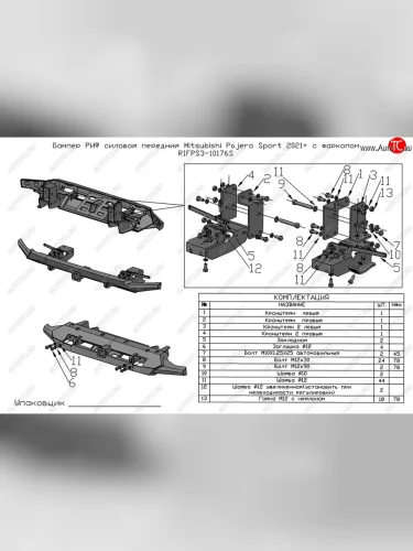 Бампер передний силовой РИФ Mitsubishi Pajero Sport (2019-2022) QF (С квадратом под фаркоп) в Самаре Самарской области
