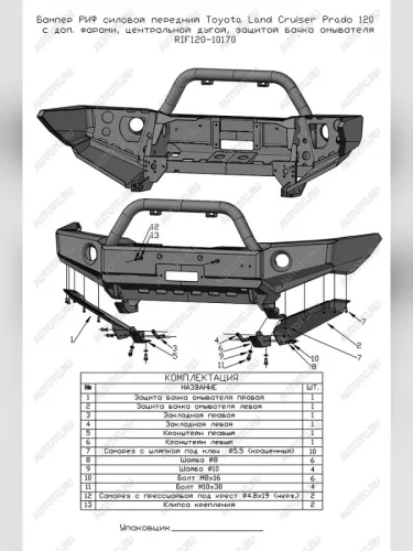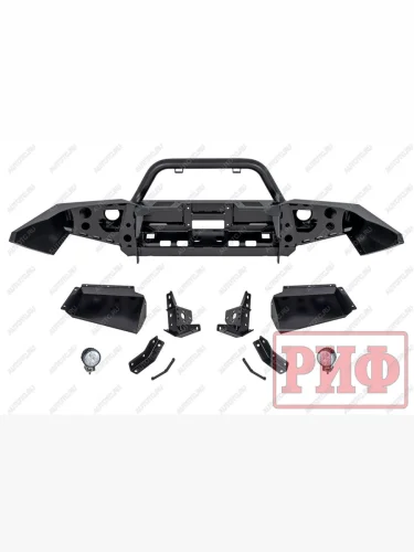 | Наименование | Бампер силовой передний (c дополнительными фарами, центральной дугой, защитой бачка омывателя) РИФ (черные) в Самаре Самарской области |