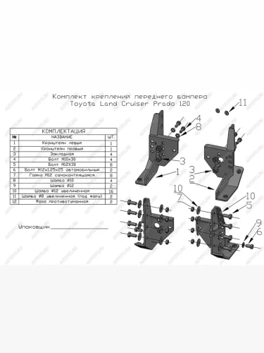 Бампер силовой передний (c дополнительными фарами, центральной дугой, защитой бачка омывателя) РИФ Toyota Land Cruiser Prado (2002-2009) J120 (черные) в Самаре Самарской области