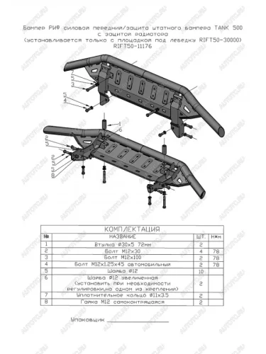 | Наименование | Бампер силовой передний (c защитой радиатора устанавливается только с площадкой под лебёдку) РИФ (черный) в Самаре Самарской области |