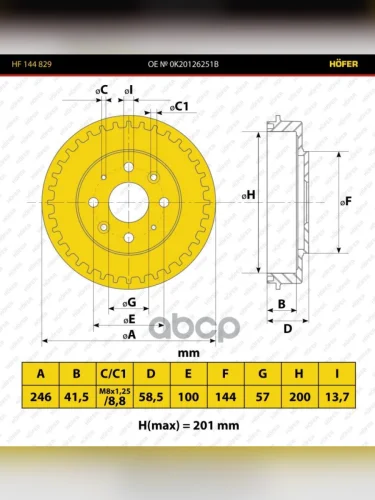 Барабан Тормоза Kia Sephia, Spectra (К-Т) Hofer HOFER арт. HF 144 829 в Самаре Самарской области