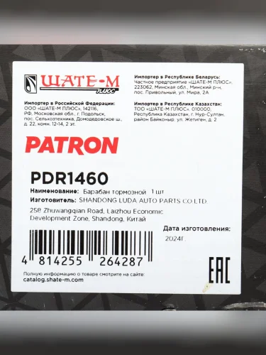 | Наименование | Барабан тормозной PEUGEOT 206 (98-) задний (1шт.) PATRON PATRON pdr1460 в Самаре Самарской области |