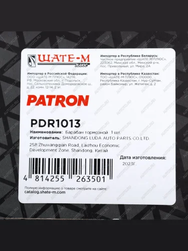 Барабан тормозной RENAULT Duster (12-) задний (1шт.) PATRON PATRON pdr1013 в Самаре Самарской области