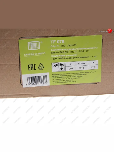 Барабан тормозной ВАЗ-2121,2123 TRIALLI TRIALLI tf078 в Самаре Самарской области