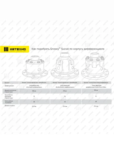 Блокка ™ Suzuki задний мост JimnyEscudo («болтовой» дифференциал 27411-83000 и «безболтовой» дифференциал 27421-60А11 и 27421-60A13)