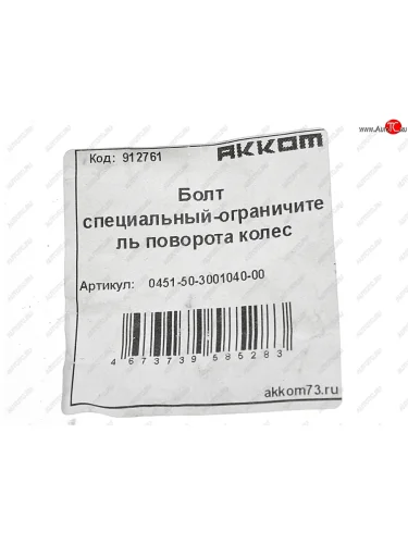 | Наименование | Болт УАЗ-452,3163 ограничителя кулака поворотного АККОМ АККОМ 451-3001040 в Самаре Самарской области |