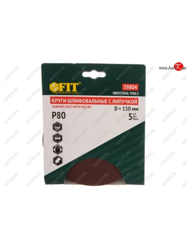 Бумага наждачная на липучке D150 P80 5шт. FIT FIT 39804 в Самаре Самарской области
