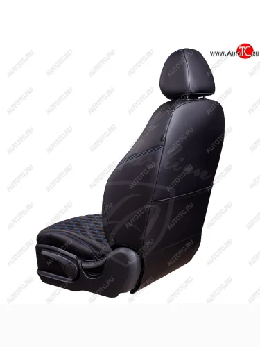 Чехлы для сидений Lord Autofashion Байрон (экокожа, раздельная спинка, 3 Г-образных подголовника) Лада ВАЗ XRAY (2016-2022) (Черный, вставка черная, строчка синяя) в Самаре Самарской области