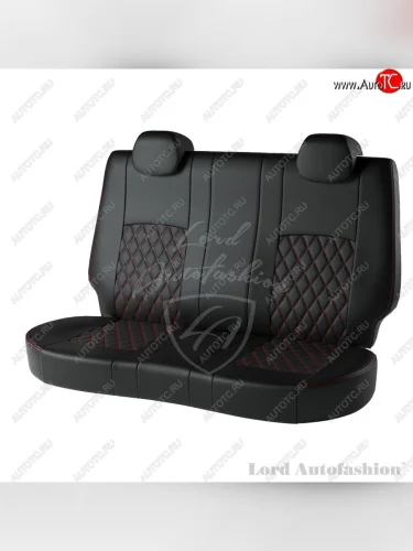 Чехлы для сидений Lord Autofashion Турин Ромб (экокожа, спинка 60/40+подлокотник, 3 Г-образных подголовника) Skoda Rapid (2012-2020), Volkswagen Polo (2020-2022) (Чёрный, вставка чёрная, строчка красная) в Самаре Самарской области