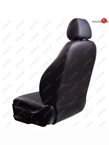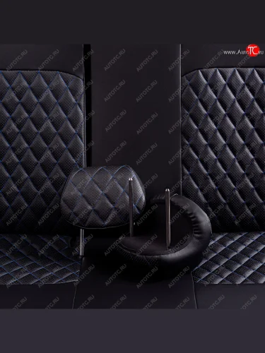 Чехлы для сидений Lord Autofashion Турин Ромб (экокожа, спинка и сиденье 60/40, 3 Г-образных подголовника) Datsun on-DO (2019-2021) (Черный, вставка черная, строчка синяя) в Самаре Самарской области