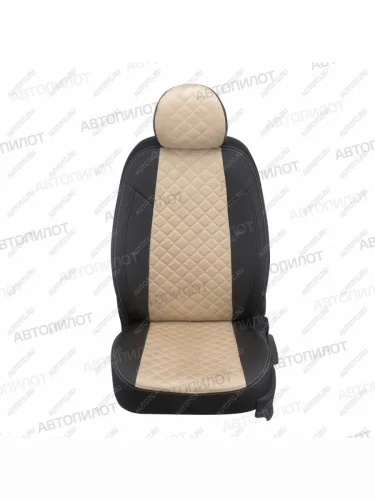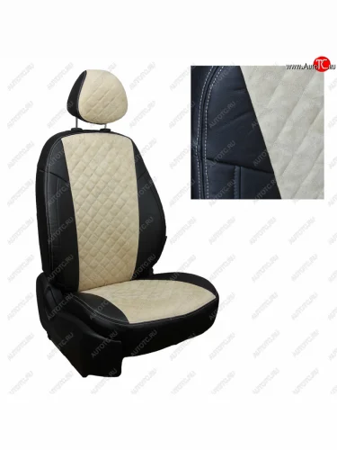 Чехлы на сиденья Алькантара ромб (без подушек безоп. раздел. 40/60 экокожа) Автопилот Renault Sandero 2 дорестайлинг (2014-2018) (черный/бежевый) в Самаре Самарской области