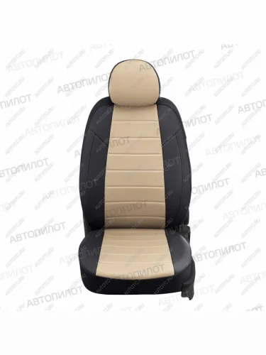 Чехлы на сиденья Экокожа (3 места экокожа) Автопилот Volkswagen Transporter T5 рестайлинг (2009-2015) (черный/бежевый) в Самаре Самарской области
