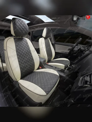 Чехлы на сиденья Ромб (40/60 экокожа) Автопилот Chery Tiggo 4 дорестайлинг (2017-2020) (белый/черный) в Самаре Самарской области