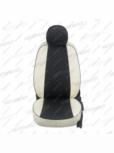Чехлы на сиденья Ромб (к. Elegance с подлокот. 40/60 экокожа) Автопилот Skoda Octavia A7 рестайлинг универсал (2016-2020) (белый/черный) в Самаре Самарской области