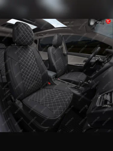 | Наименование | Чехлы сидений (экокожа, 40/60) Автопилот Ромб (черный/белая строчка) в Самаре Самарской области |