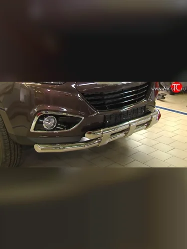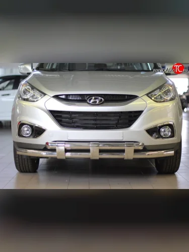 Двойная защита переднего бампера с пластинами из труб диаметром по 63 мм Petroil Tuning Hyundai IX35 LM дорестайлинг (2009-2013) (Нержавеющая полированная сталь) в Самаре Самарской области