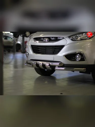 Двойная защита переднего бампера с зубьями из труб диаметром по 63 мм Petroil Tuning Hyundai IX35 LM дорестайлинг (2009-2013) (Нержавеющая полированная сталь) в Самаре Самарской области
