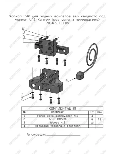 | Наименование | Фаркоп РИФ для задних бамперов РИФ нового образца для УАЗ Хантер (без шара и переходника) rif469-88005 в Самаре Самарской области |