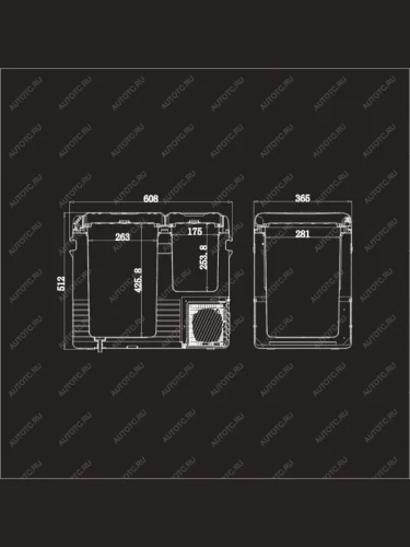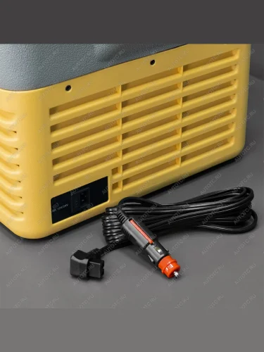 Питание осуществляется от прикуривателя (12 или 24 В). Автохолодильник разделён на морозильную и холодильную камеры.