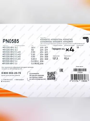 Колодки тормозные передние (4шт.) NIBK Mercedes-Benz E-Class W213 седан дорестайлинг (2016-2020) в Самаре Самарской области