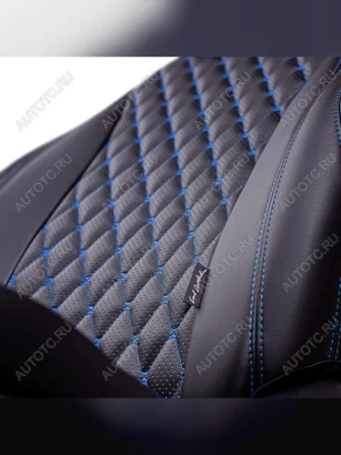 Комплект чехлов для сидений (2Н Орегон) БАЙРОН ст БАЙРОН Lord Autofashion Volkswagen Amarok (2009-2016) (черный, вставка черная, строчка синяя) в Самаре Самарской области