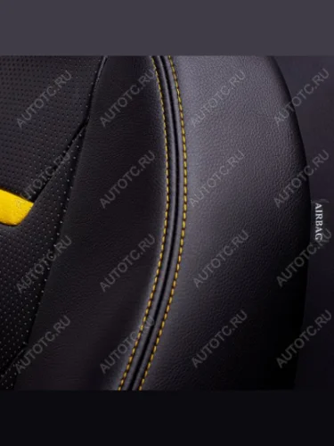 Комплект чехлов для сидений (перед. пластик РЗС 60/40 2П+3Г Орегон) ТУРИН-2 Lord Autofashion Renault Logan 2, Sandero Stepway (B8) (черный, вставка черная+желтая, строчка желтая) в Самаре Самарской области