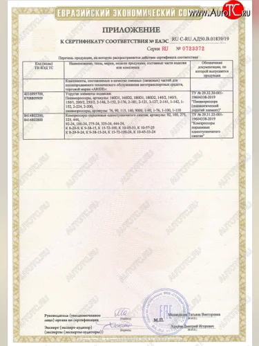 - Тип пневмоэлемента (пневмоподушки): 180D1;
