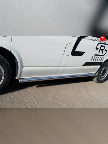 Левая защита порогов SLITKOFF из круглой трубы с закругленными торцами диаметром 63 мм Volkswagen Transporter (2003-2009) T5 в Самаре Самарской области