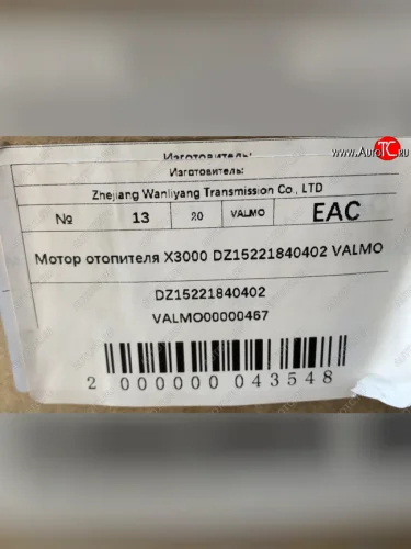 Мотор отопителя X3000 DZ15221840402 VALMO VALMO VALMO dz15221840402 в Самаре Самарской области