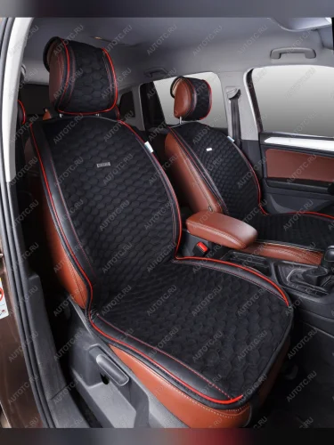 Накидка на сиденье (на весь салон Velvet Soty Plus вельвет) Автопилот (черный/строчка красная) в Самаре Самарской области