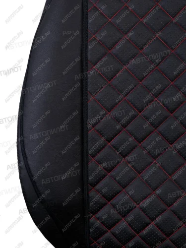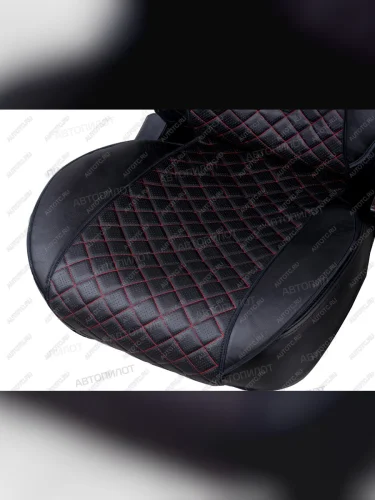 Накидки на сидения (Экокожа Ромб - Модель №3 шир. сиденье и спинка экокожа) Автопилот (черный/строчка красная) в Самаре Самарской области