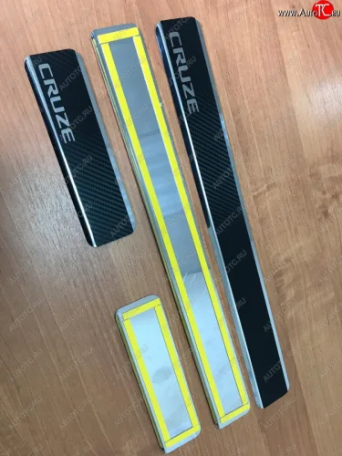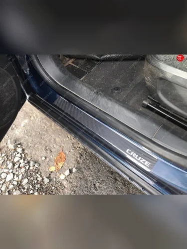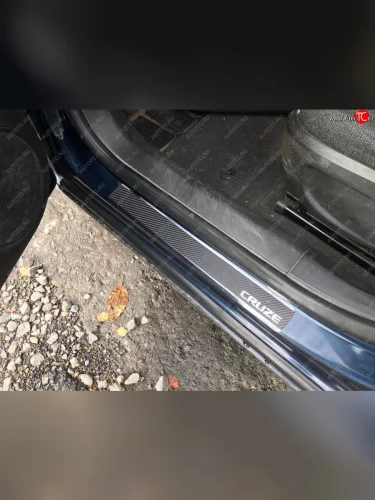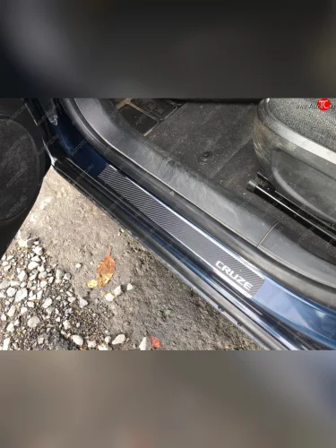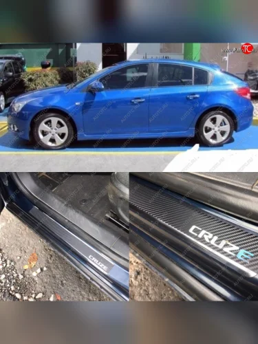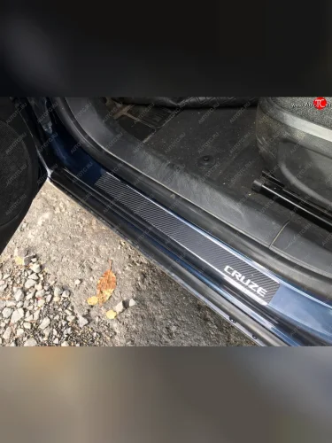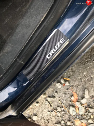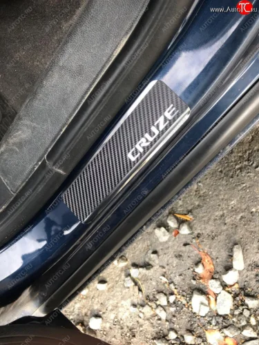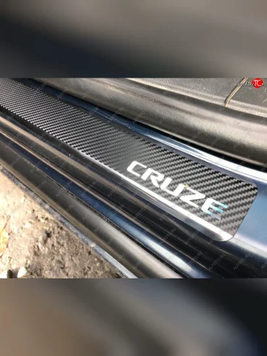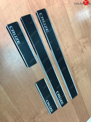 Накладки порожков салона INOX Chevrolet Cruze J305 хэтчбек дорестайлинг (2009-2012) (нержавеющая сталь + карбон) в Самаре Самарской области