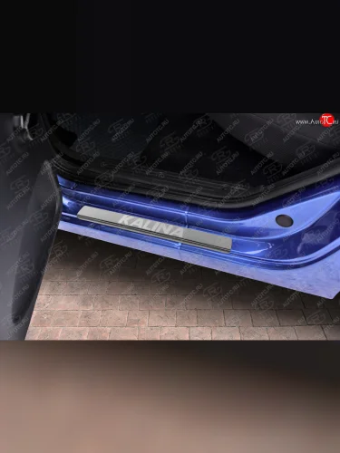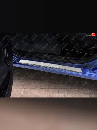 Накладки порожков салона Russtal Лада ВАЗ Калина 1119 хэтчбек (2004-2013) (Нержавейка шлифованная с надписью) в Самаре Самарской области