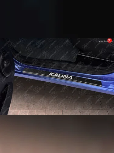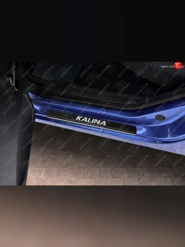 Накладки порожков салона Russtal Лада ВАЗ Калина ( 1118, 1117, 1119), Калина Спорт 1119 (Нержавейка с покрытием карбон, с надписью) в Самаре Самарской области