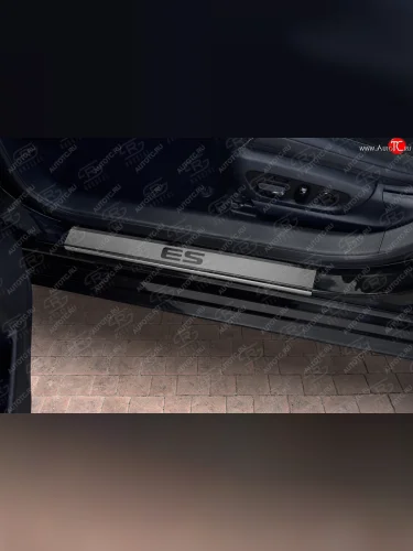Накладки порожков салона Russtal Lexus ES350 XV70 дорестайлинг (2018-2021) (Нержавейка шлифованная с надписью) в Самаре Самарской области
