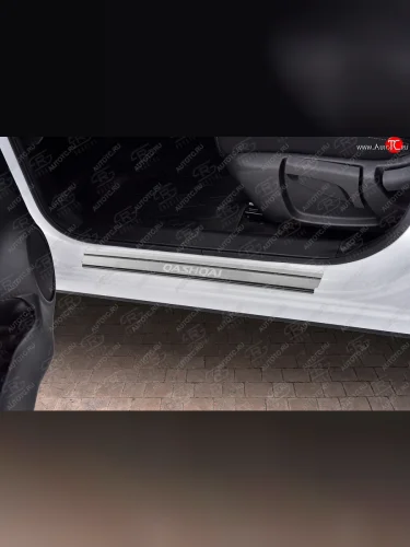 Накладки порожков салона Russtal Nissan Qashqai 2 J11 дорестайлинг (2013-2019) (нержавейка шлифованная с надписью) в Самаре Самарской области