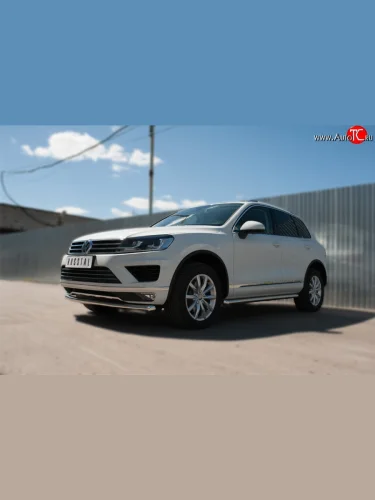 Одинарная защита переднего бампера диаметром 63 мм SLITKOFF Volkswagen Touareg (2014-2018) 2 NF в Самаре Самарской области