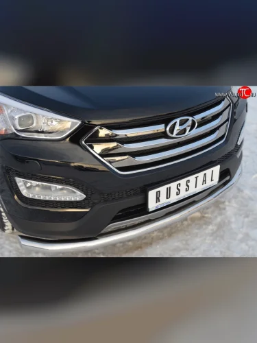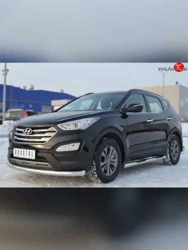 Одинарная защита переднего бампера из удлинённой трубы диаметром 76 мм SLITKOFF Hyundai Santa Fe (2012-2016) DM в Самаре Самарской области