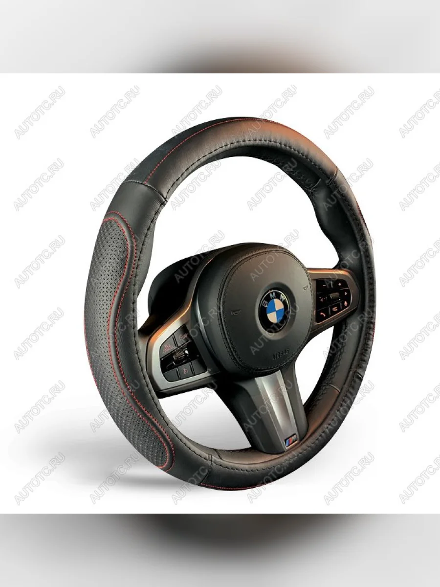 Оплётка на руль (37-39см GL2011 натурал.кожа) Автопилот (черный/строчка красная) в Самаре Самарской области